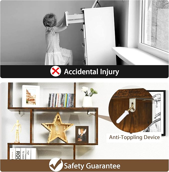 About This Engineering Wood 【Safe Anti-Tipping Design】Equipped with an anti-tipping device, the modern bookshelf is firmly attached to the wall...