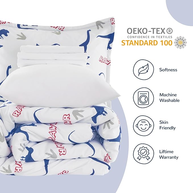 Overview Size : Full/Queen (7-Piece Set) Included Components : Comforter, Pillow Cover, Flat Sheet Color : Dinosaur Footprints Brand :...