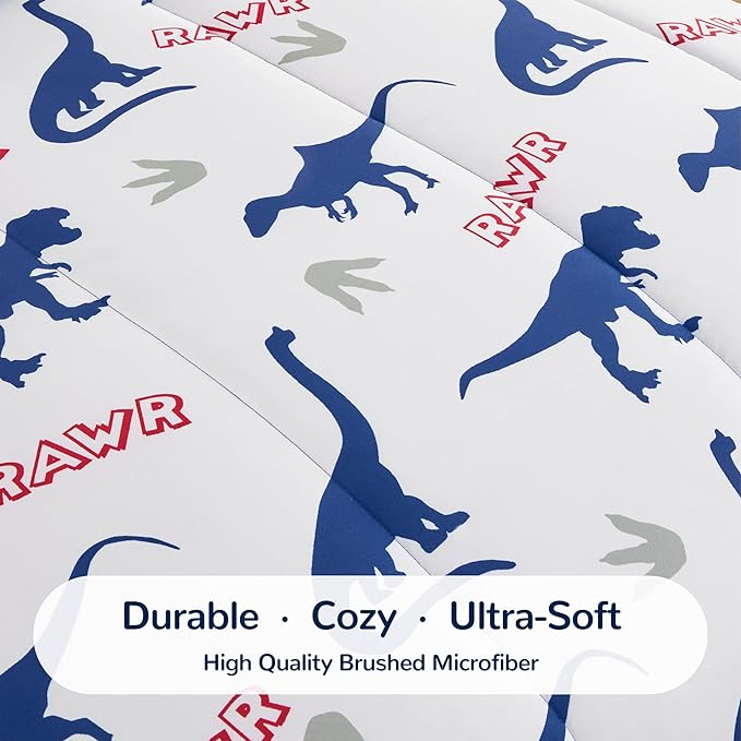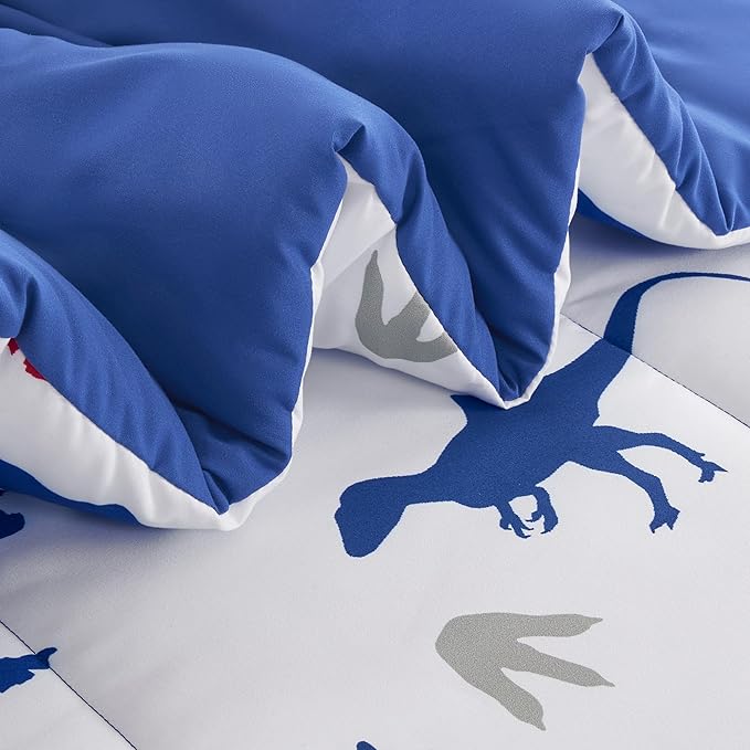 SLEEP ZONE Kids Bedding Set for Boys, Dinosaur Pattern, Super Soft and Breathable, All Season Use Comforter Set, 7 Pieces (Dinosaur Footprints, Full/Queen)