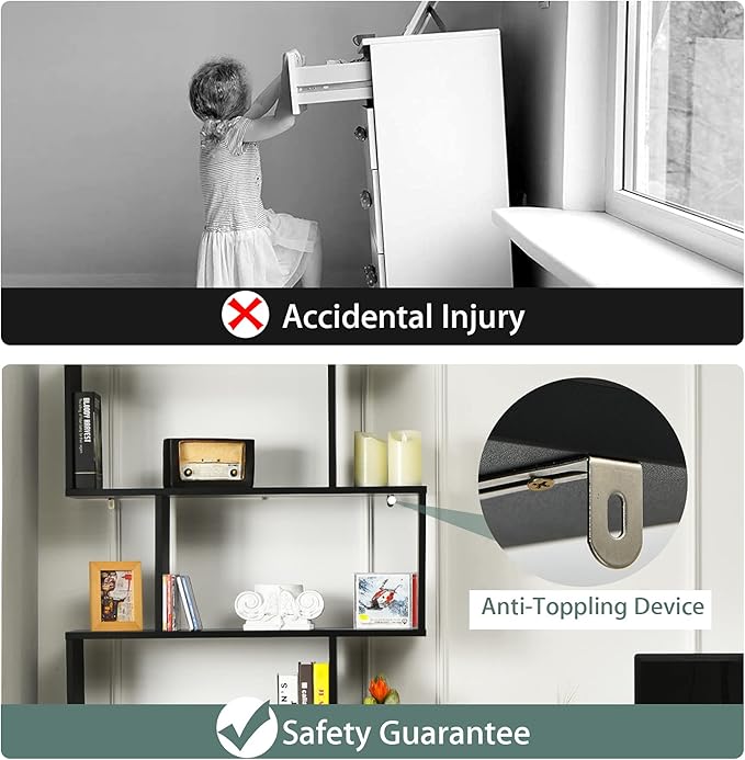 About This Engineering Wood 【Safe Anti-Tipping Design】Equipped with an anti-tipping device, the modern bookshelf is firmly attached to the wall...