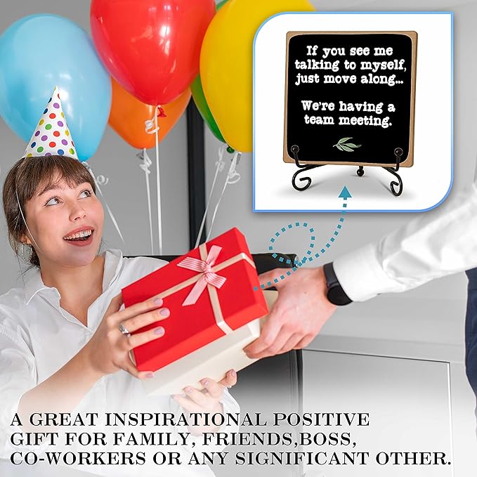 Rustic Office Desk Decor Sign Gift, Desk Accessories for Coworker, If You See Me Talking to Myself We're Having a Team Meeting Desk Plaque Sign with Stand, Home Office Desk Decoration -22