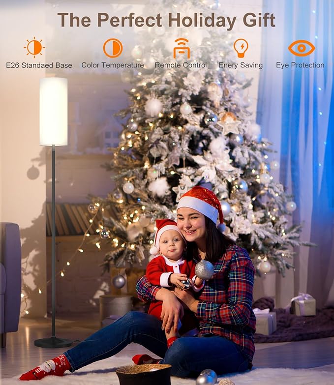 LED Floor Lamp for Living Room, Dimmable Standing Lamps with Foot Switch,Remote Custom Color Temperature Black Pole Lamp with Lampshade,12W Led Bulb Tall Lamps for Bedroom Office Kid Room