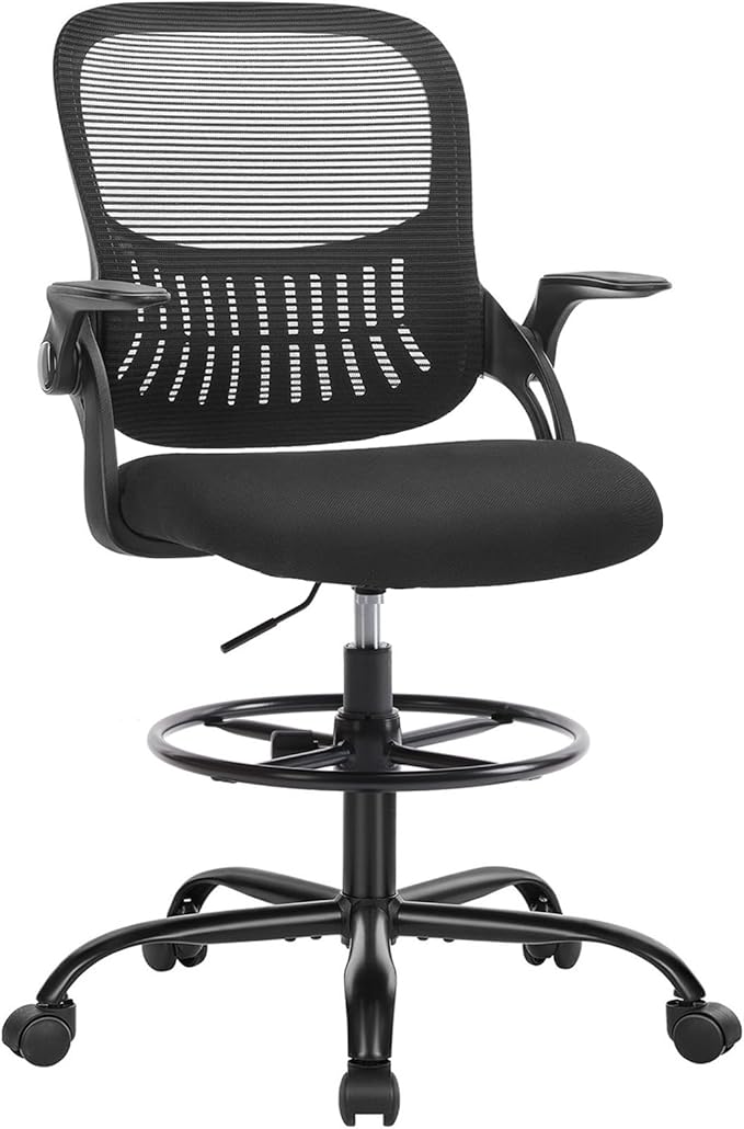 SMUG Drafting Chair, Tall Office Chair Tall Standing Desk Chair Counter Height Adjustable Office Chair with Flip-up Arms, Mid Back Mesh Office Drafting Chairs, Black