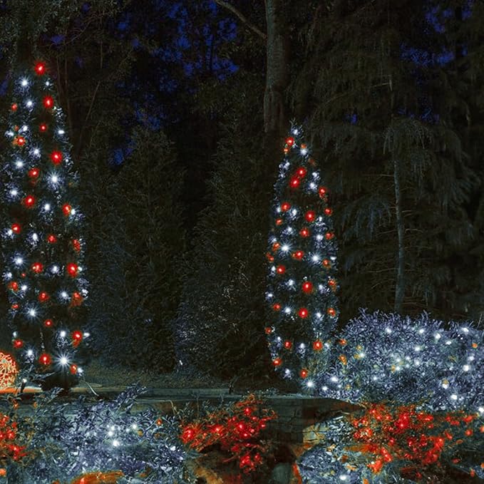 Dazzle Bright Battery Operated Christmas Lights, 2 Pack Total 32FT 100LED Clear Mini String Lights Waterproof with 8 Modes for Xmas Indoor Outdoor Yard Holiday Wedding Decorations (Red and White)