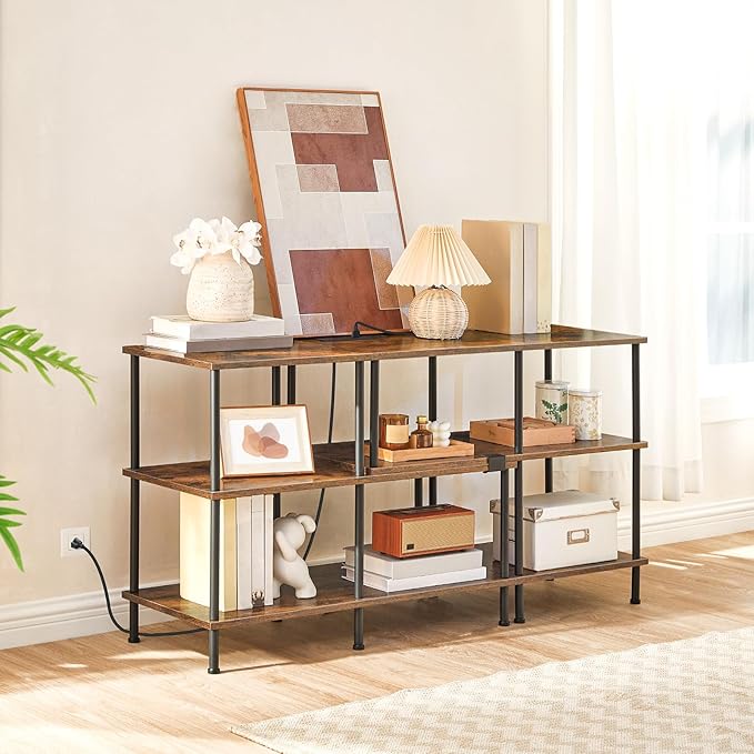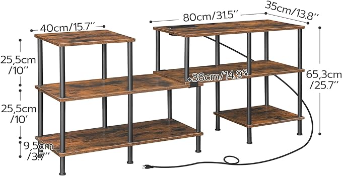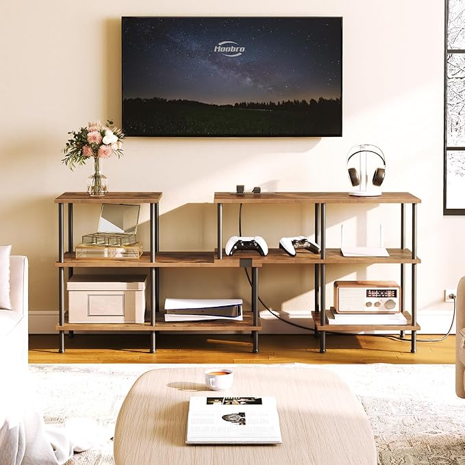 HOOBRO TV Stand, Deformable TV Stand with Power Outlets to 75 Inch, Modern Entertainment Center with Storage Shelves, Media TV Console Table for Living Room, Bedroom, Rustic Brown and Black BF15UDS01