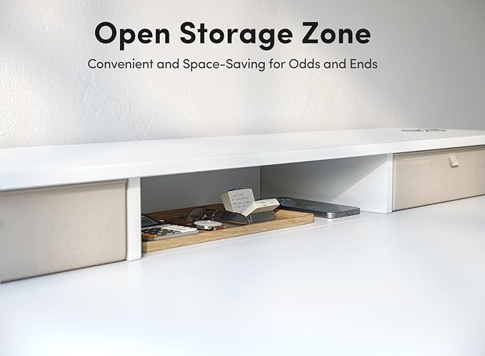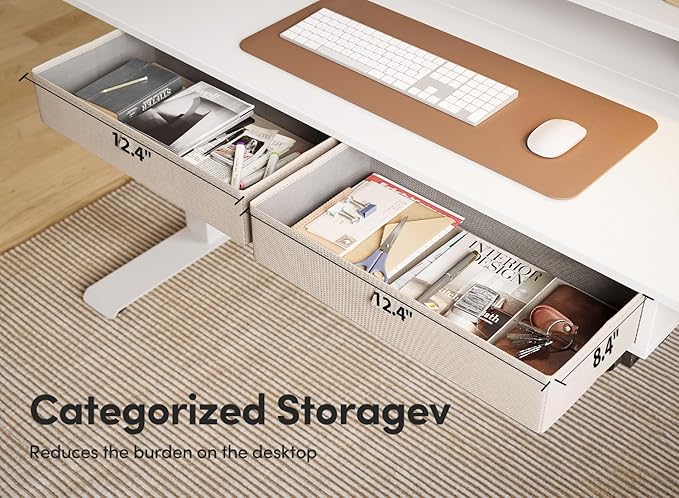 BANTI Height Adjustable Electric Standing Desk with 4 Drawers, 48 x 24 Inch Table with Storage Shelf, Sit Stand Desk, White Top