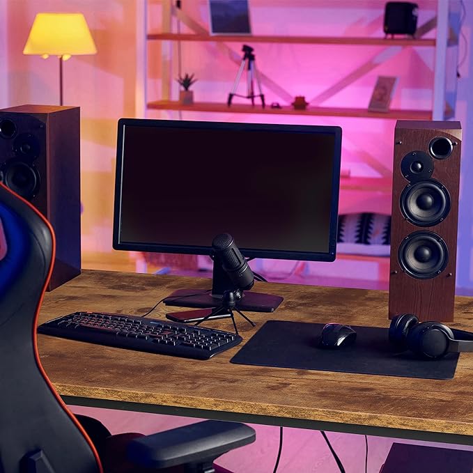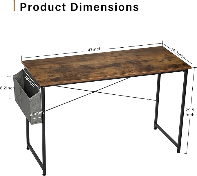 HealSmart Home Office Computer Desk, Modern Style Design with Headphone Hooks for Working, Writing and Gaming, 32 Inch, 47 Inches, Deep Brown