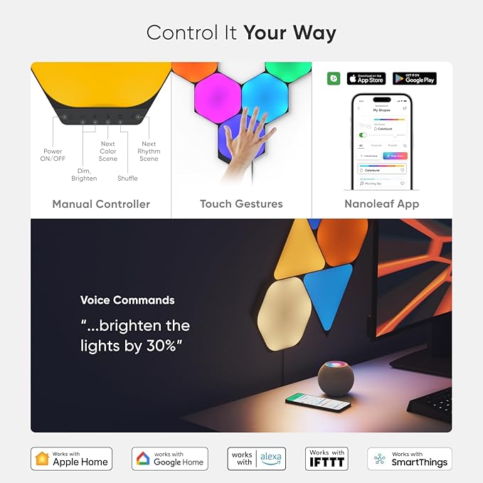 About This [REQUIRED] Nanoleaf Shapes Smarter Kit (Hexagons, Triangles, or Mini Triangles) required for use. [Build & Expand Your Designs]...