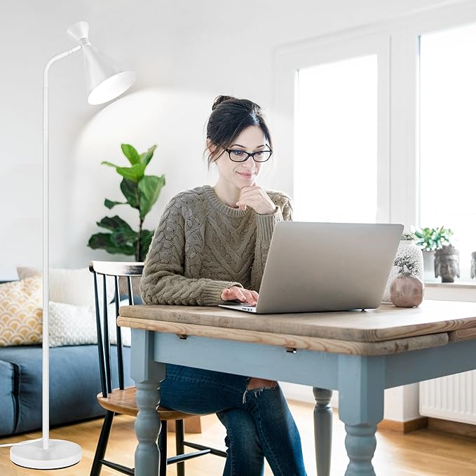 PARTPHONER Floor Lamp for Living Room, Modern Adjustable Metal Heads Standing Lamps, Simple Design White Floor Lamp with Foot Switch for Bedroom, Office, Kids Room, Reading, Working(Bulb Not Included)