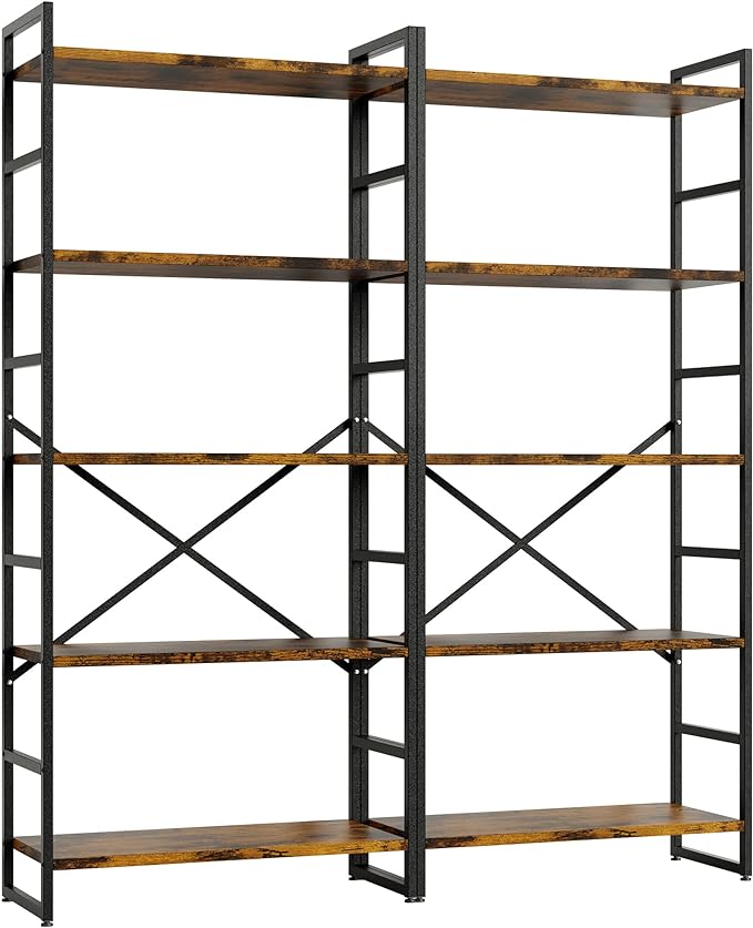 Shintenchi 2 Pieces 5 Tiers Bookshelf, Classically Tall Bookcase Shelf, Industrial Book Rack, Modern Book Holder in Bedroom/Living Room/Home/Office, Storage Rack Shelves for Books/Movies Brown