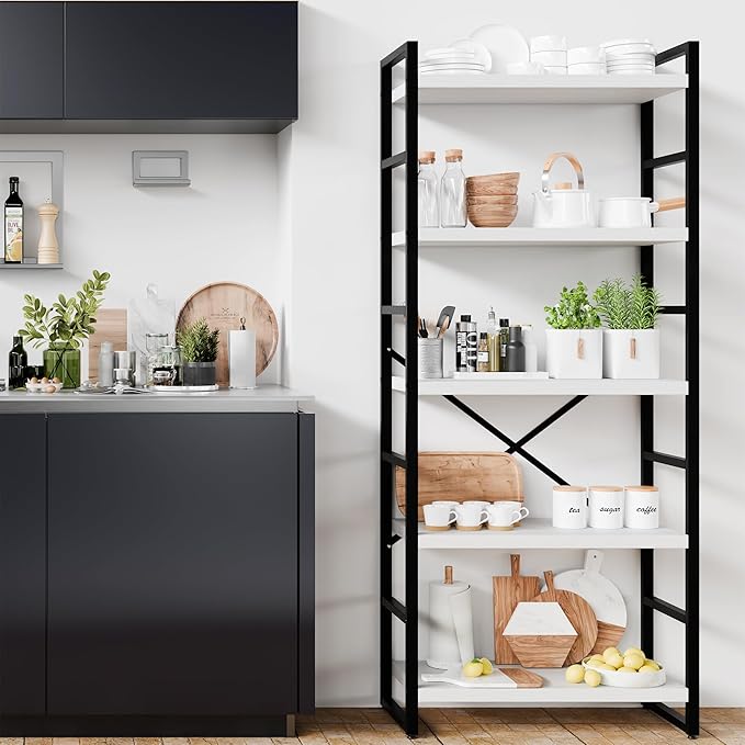 Shintenchi 5 Tiers Bookshelf, Classically Tall Bookcase Shelf, Industrial Book Rack, Modern Book Holder in Bedroom/Living Room/Home/Office, Storage Rack Shelves for Books/Movies,White