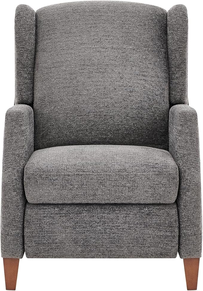 COLAMY Wingback Pushback Recliner Storage Pocket Upholstered Fabric Living Room Chair Armchair, with Wood Legs and Nailhead Trim, Dark Grey