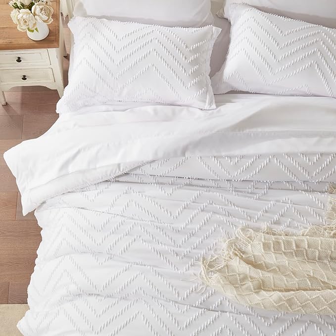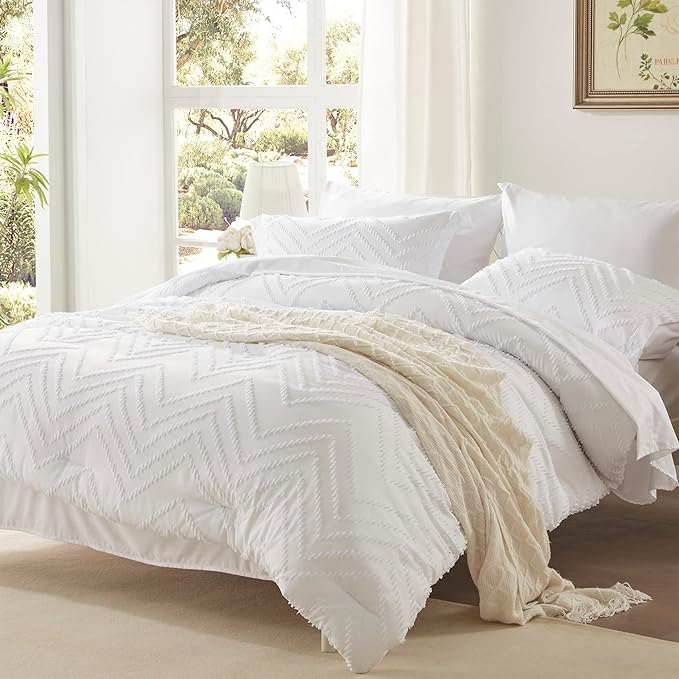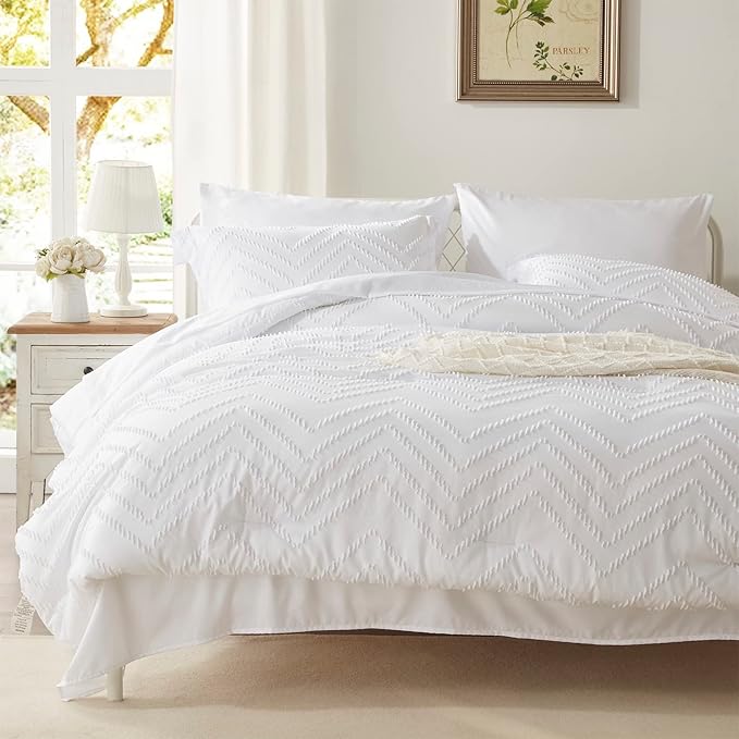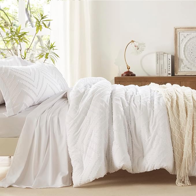 Anluoer Full Comforter Set, White Tufted Bed in a Bag 7 Pieces with comforters and sheets, All Season Bedding Sets with 1 Comforter, 2 PillowShams, 2 Pillowcases, 1 Flat Sheet, 1 Fitted Sheet