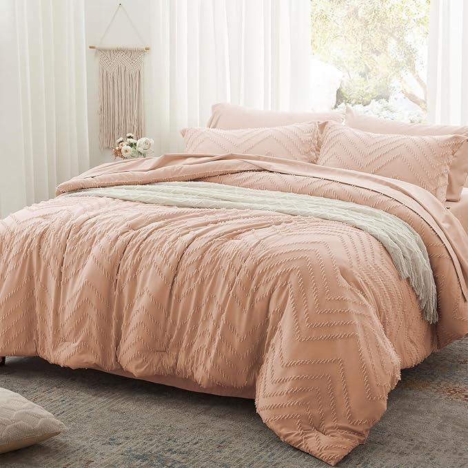 Anluoer Twin Comforter Set, Pink Tufted Bed in a Bag 5 Pieces with comforters and sheets, All Season Bedding Sets with 1 Comforter, 1 PillowShams, 1 Pillowcases, 1 Flat Sheet, 1 Fitted Sheet