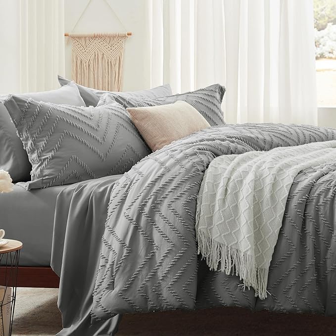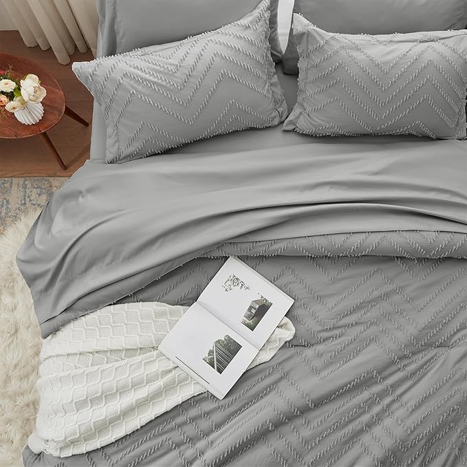 Anluoer King Comforter Set, Grey Tufted Bed in a Bag 7 Pieces with comforters and sheets, All Season Bedding Sets with 1 Comforter, 2 PillowShams, 2 Pillowcases, 1 Flat Sheet, 1 Fitted Sheet