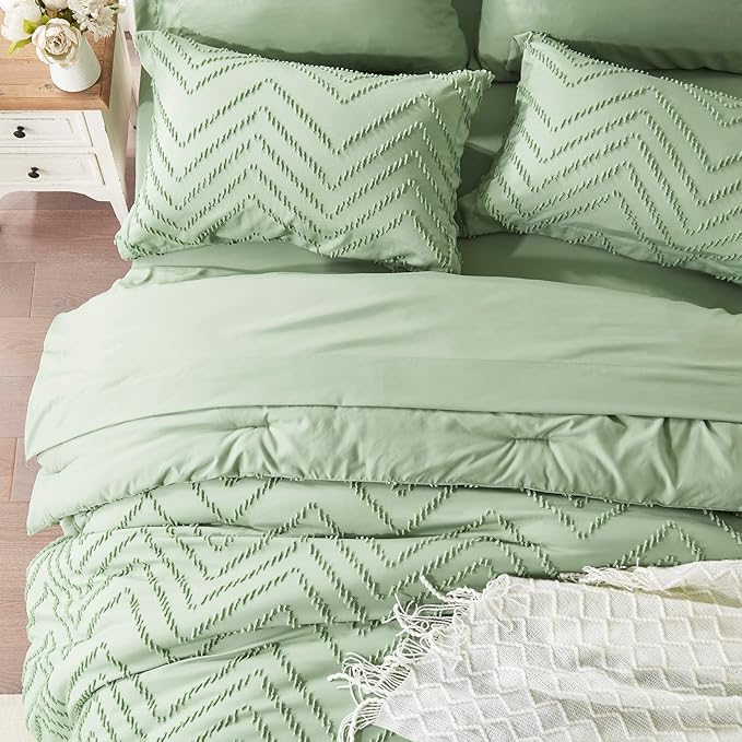 Anluoer Full Comforter Set, Sage Green, 7 Pieces with Sheets, All Season Bedding, Extra Cozy Down Alternative, Machine Washable