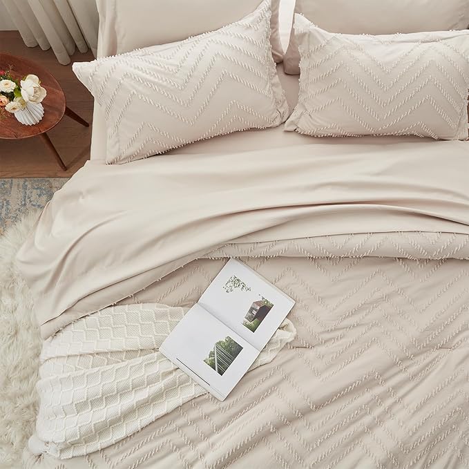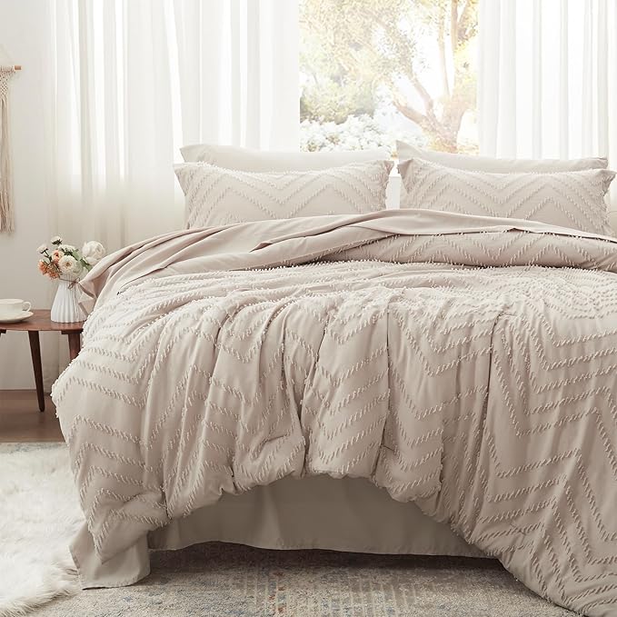Anluoer Queen Comforter Set, khaki Tufted Bed in a Bag 7 Pieces with comforters and sheets, All Season Bedding Sets with 1 Comforter, 2 PillowShams, 2 Pillowcases, 1 Flat Sheet, 1 Fitted Sheet