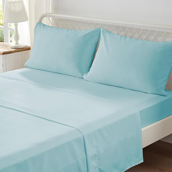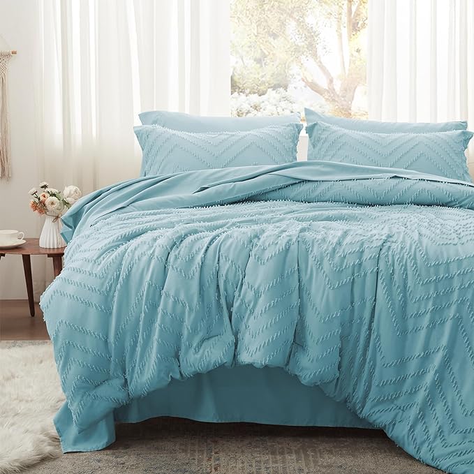 Anluoer Queen Comforter Set, Sky Blue Tufted Bed in a Bag 7 Pieces with comforters and sheets, All Season Bedding Sets with 1 Comforter, 2 PillowShams, 2 Pillowcases, 1 Flat Sheet, 1 Fitted Sheet