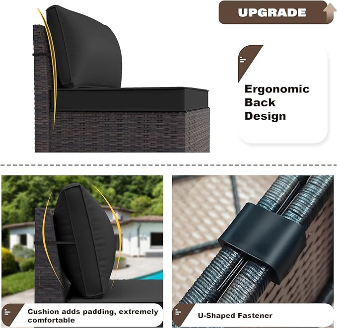 12PCS Patio Furniture Set Sofa Wicker Sectional Sofa Set, Outdoor Furniture Rattan Patio Conversation Set with Cushions and Glass Coffee Table, Black
