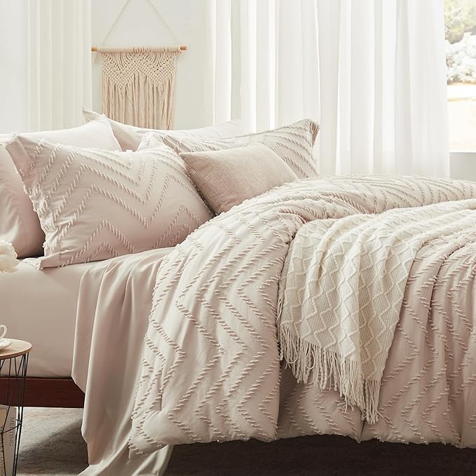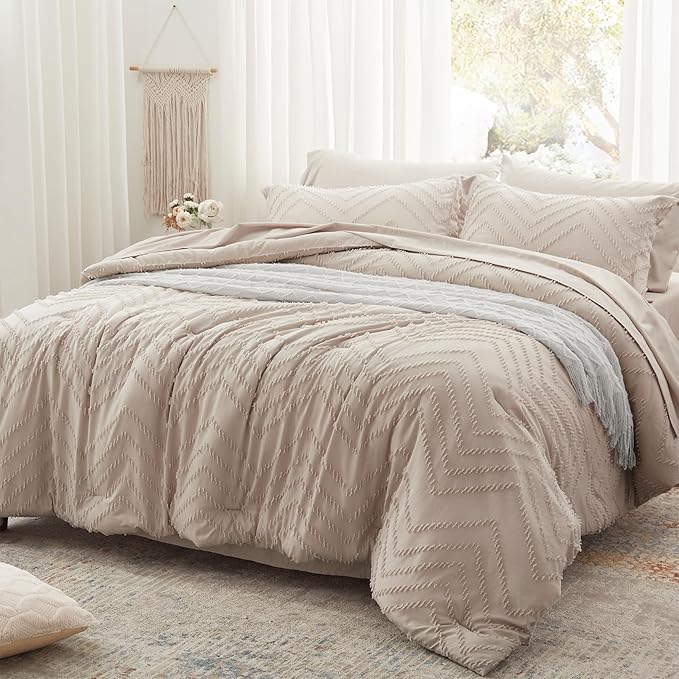 Anluoer King Bed in a Bag 7 Pieces, khaki Tufted Comforter Set with comforters and sheets, All Season Bedding Sets with 1 Comforter, 2 PillowShams, 2 Pillowcases, 1 Flat Sheet, 1 Fitted Sheet