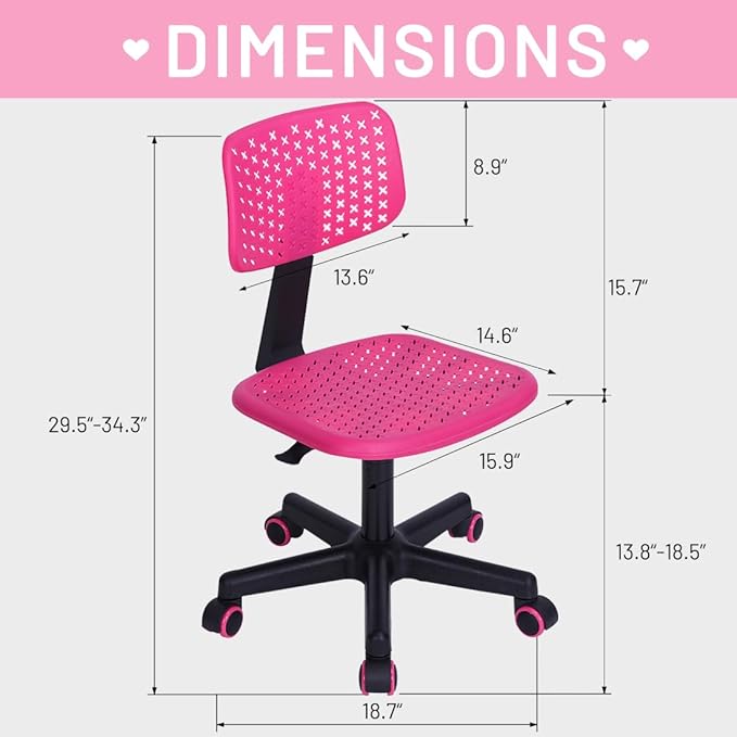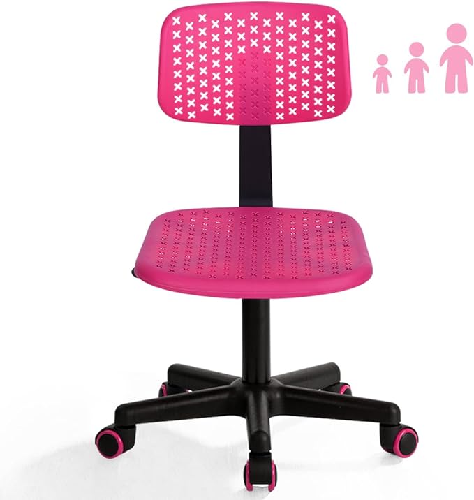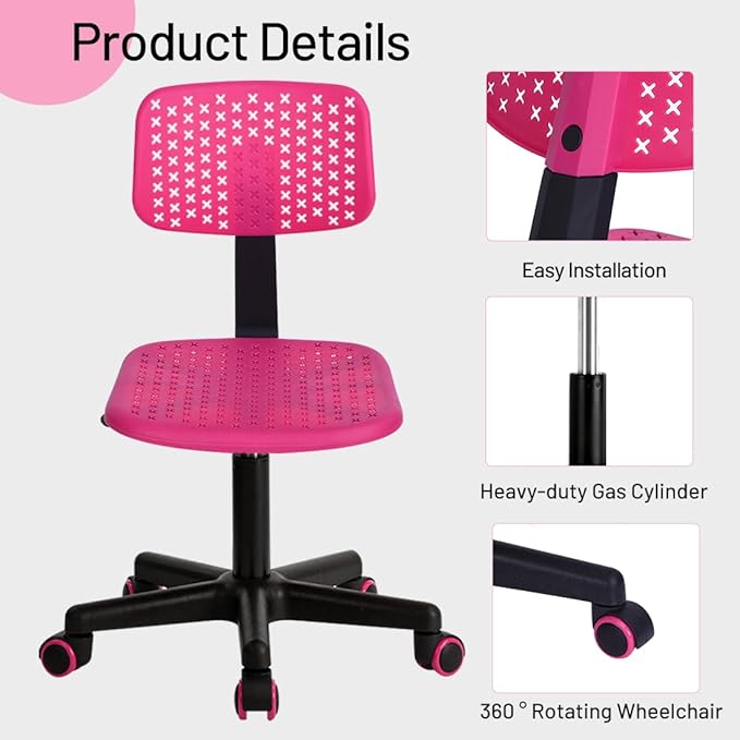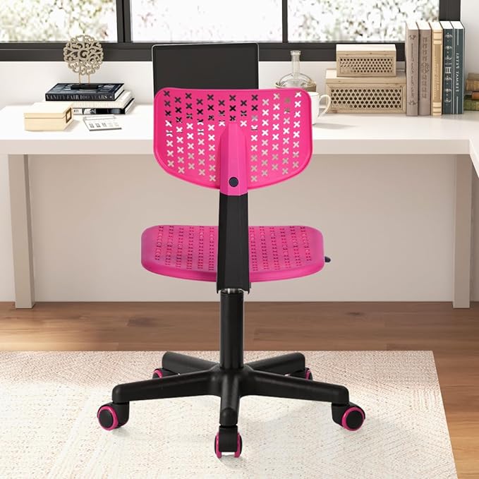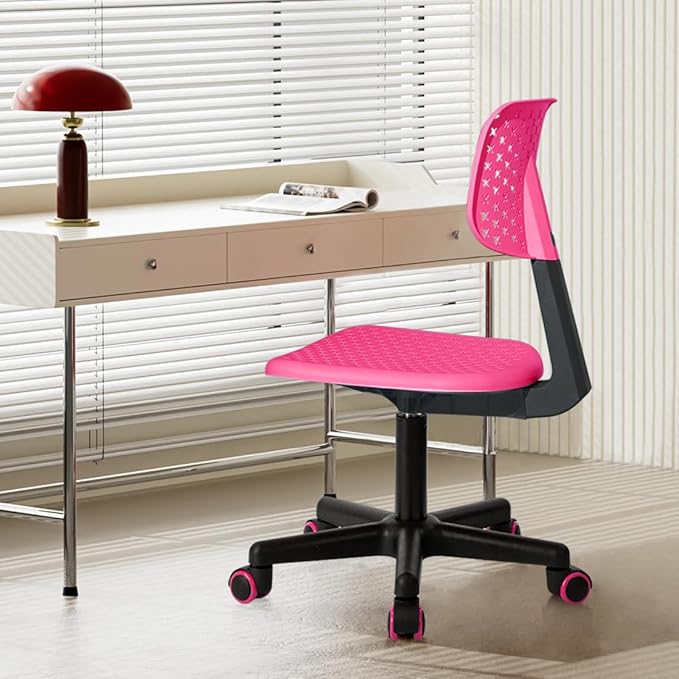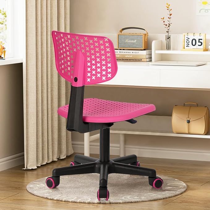 Desk Chair Armless Cute Office Chair, Low Back Rolling Home Office Task Chair Adjustable Swivel Study Chair for Girls Teens Adults Children Kids, Pink