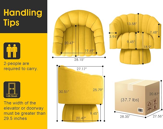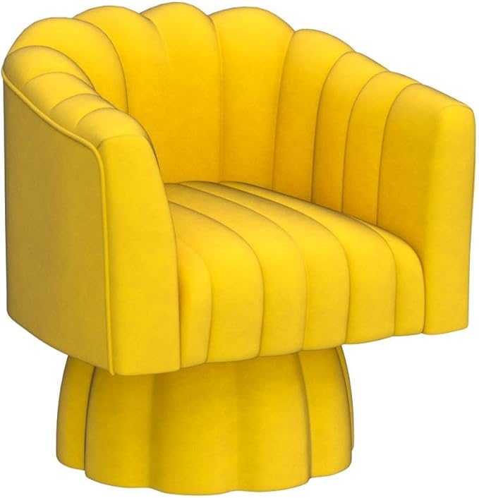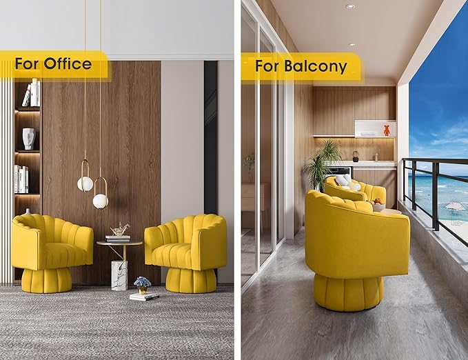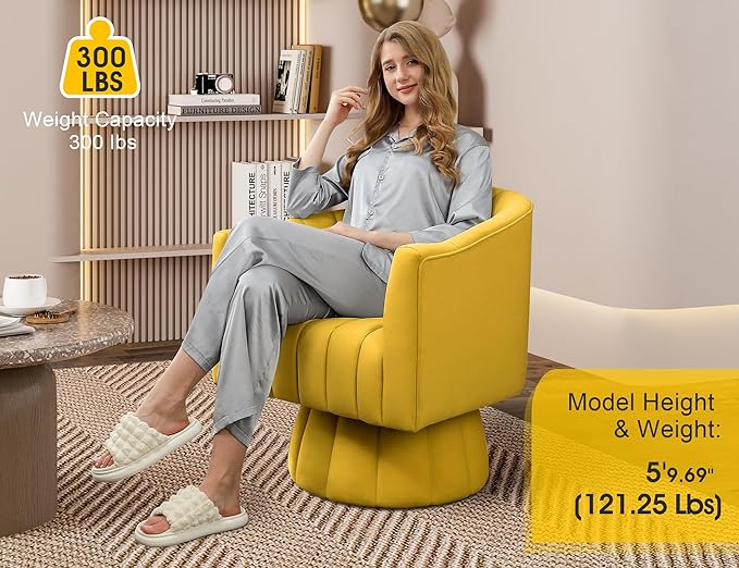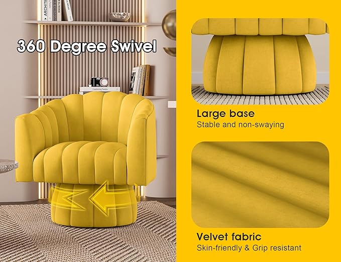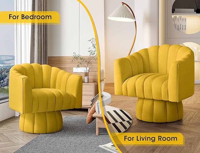 Accent Chair Mid Century 360 Degree Swivel Chair,Modern Lounge Sofa Round Barrel Chair with Wide Upholstered,Fluffy Velvet Fabric Chairs for Home Sofa Living Room/Bedroom/Waiting Room(Yellow)