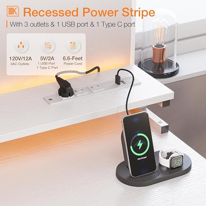 About This Built-in Power Outlet: This computer desk is equipped with 3 AC outlets, 1 USB port, and 1 Type...