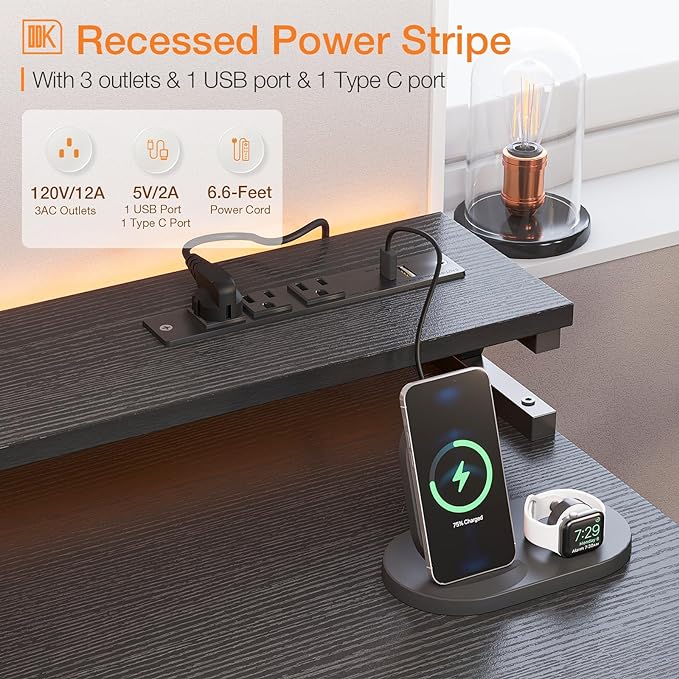 About This Built-in Power Outlet: This computer desk is equipped with 3 AC outlets, 1 USB port, and 1 Type...