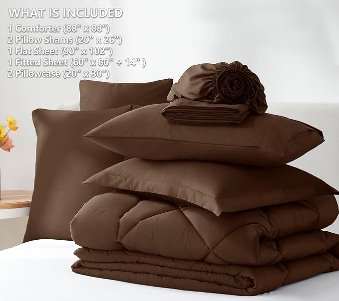 CozyLux Queen Comforter Set with Sheets 7 Pieces Bed in a Bag Brown All Season Bedding Sets with Comforter, Pillow Shams, Flat Sheet, Fitted Sheet and Pillowcases