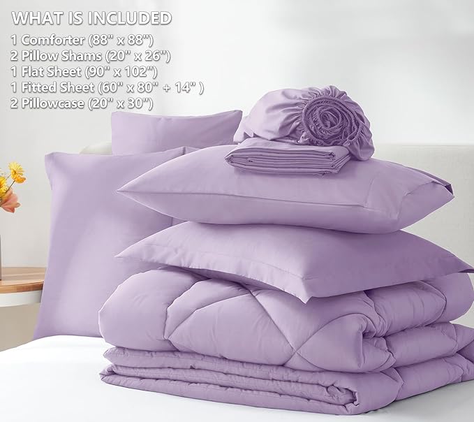 CozyLux Queen Comforter Set with Sheets 7 Pieces Bed in a Bag Light Purple All Season Lavender Bedding Sets with Comforter, Pillow Shams, Flat Sheet, Fitted Sheet and Pillowcases