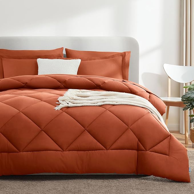 CozyLux King Comforter Set with Sheets 7 Pieces Bed in a Bag Burnt Orange All Season Bedding Sets with Comforter, Pillow Shams, Flat Sheet, Fitted Sheet and Pillowcases