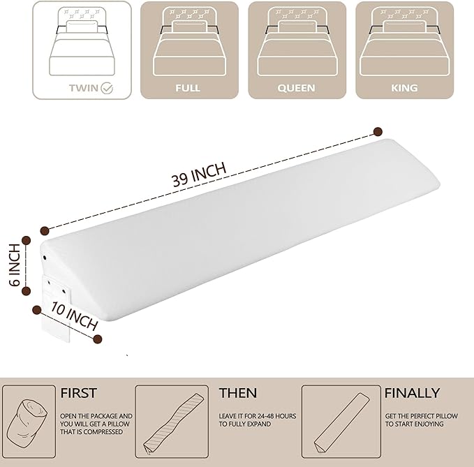 Bed Wedge Pillow,Headboard Pillow,Mattress Wedge,Close The Gap (0-8") Between Your Mattress and Headboard,Bed Gap Filler (White, Twin)
