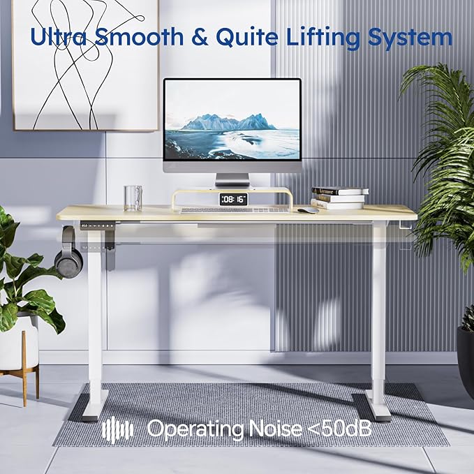 Standing Desk, Height Adjustable Desks with Powerful Motor and Cable Management,electric Sit Stand Desk with Hight Preset Design for Home Office Use 55x24 in Maple