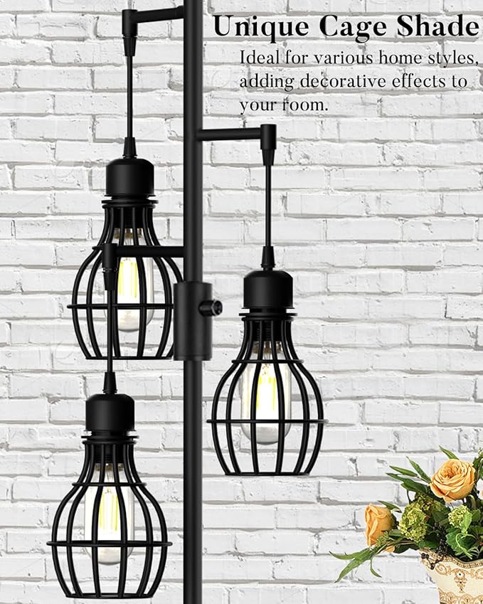Lightdot 68IN Industrial Floor Lamp Dimmable (Brightness Adjustable), Farmhouse Tree Floor Lamp with E26 LED Edision Bulbs Included, 3-Light Tall Pole Standing Lamp for Living Room Bedroom-Black
