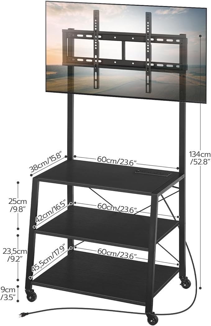 About This Movable & Lockable: This charging mobile TV stand has equipped with four heavy pulleys, and 2 of casters...