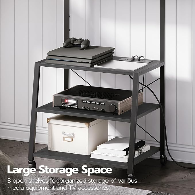 HOOBRO Rolling TV Stand with Mount and Power Outlet Up to 55 inch TVs, Corner Entertainment Center, Small TV Stand with 3-Tier Storage Shelves for Living Room, Bedroom, Black BB66UDS01