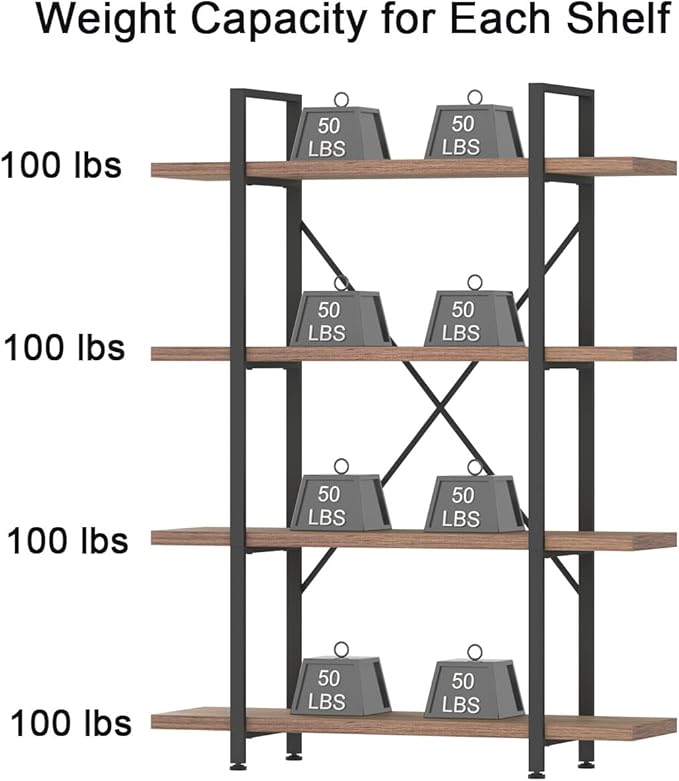 About This 【Industrial Modern Bookshelf】: This 4 tier bookshelf features a open metal frame and wood shelves with a rustic...