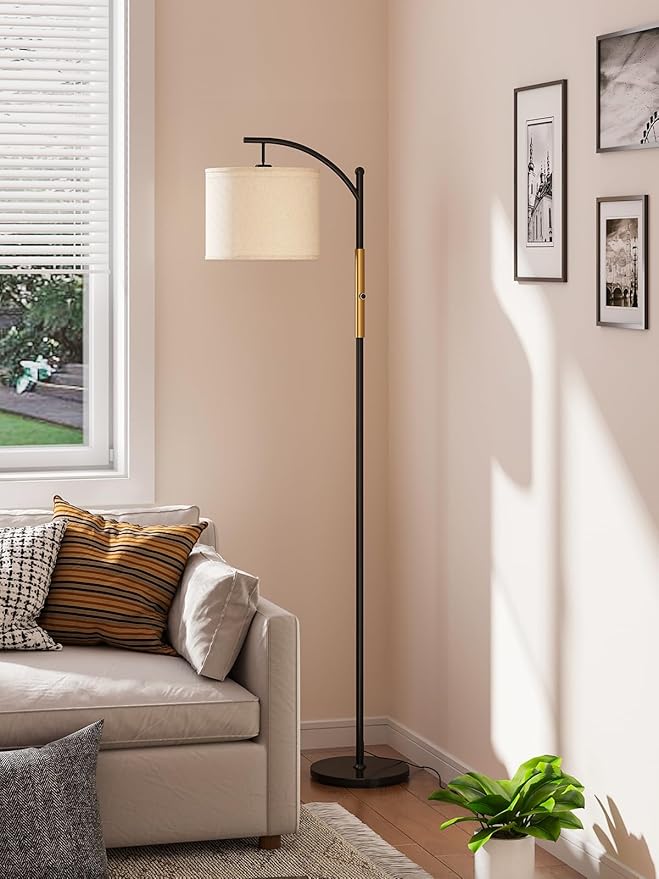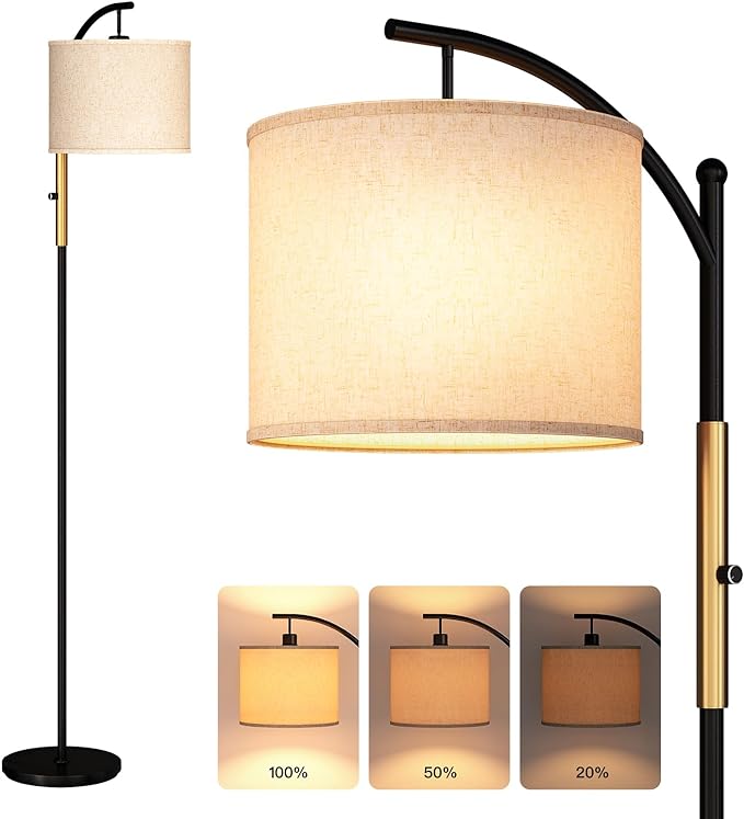 addlon Floor Lamp for Living Room with dimmable Brightness (1-100%), Standing lamp with Linen lampshade for Bedroom, Office, Lamps with 9W LED Bulb Included - Black and Gold