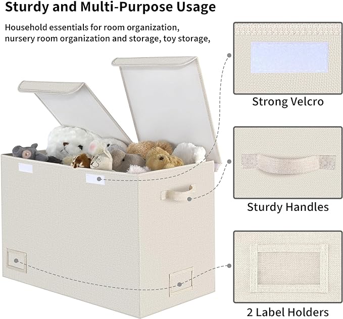 GRANNY SAYS Toy Chest with Lids, Foldable Toy Storage Organizer with Handles, Stuffed Animal Storage for Nursery Room Playroom, Living Room, Large Toy Box for Boys and Girls, Light Brown