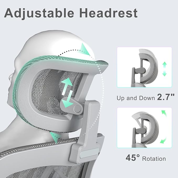 Ergonomic Mesh Office Chair, High Back Desk Chair with 3D Armrests, Adaptive Thoracic Support, 3D lumbar support & Adjustable Headrest, Home Swivel Computer Chair with Tilt Function