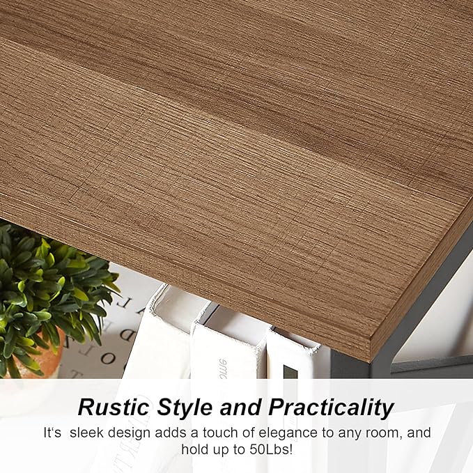 Bookcase, Industrial Small Bookshelf,3-Tier Bookcase Storage Organizer, Small Book Shelf for Small Spaces, Living Room, Bedroom and Home Office, Brown