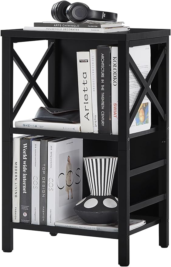 Bookcase, Industrial Small Bookshelf,3-Tier Bookcase Storage Organizer, Small Book Shelf for Small Spaces, Living Room, Bedroom and Home Office, Black