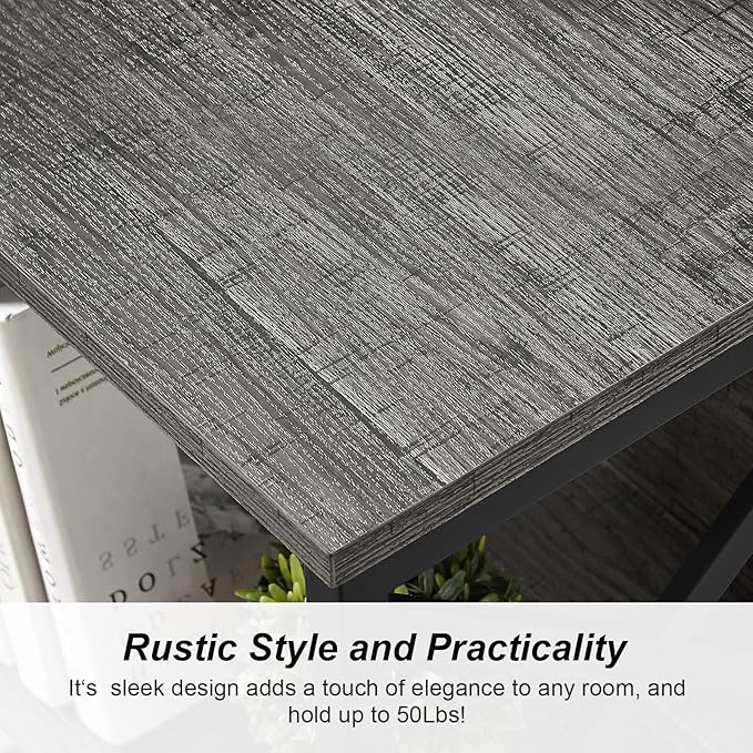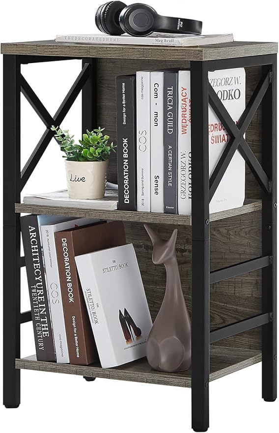 Bookcase, Industrial Small Bookshelf,3-Tier Bookcase Storage Organizer, Small Book Shelf for Small Spaces, Living Room, Bedroom and Home Office, Gray