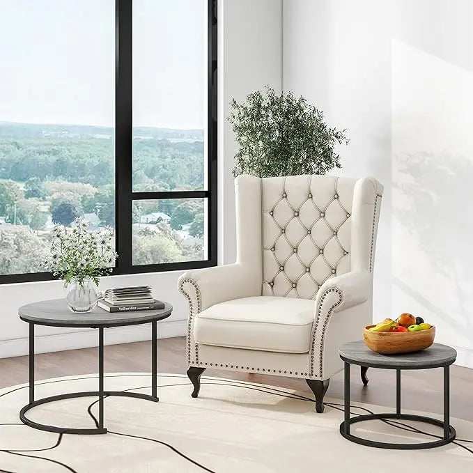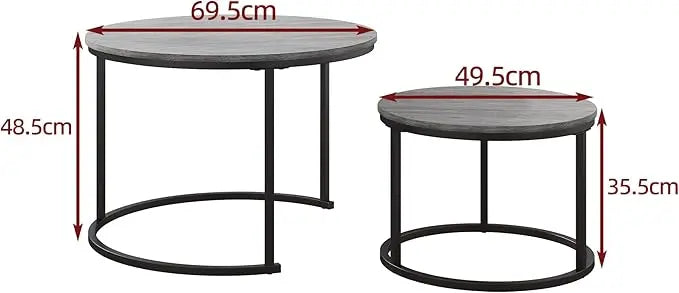 Nesting Round Coffee Table Set of 2 End Tables for Living Room,Grey Coffee Table Wooden Accent Furniture with Metal Frame,Stacking Side Tables,Black+Warm Grey