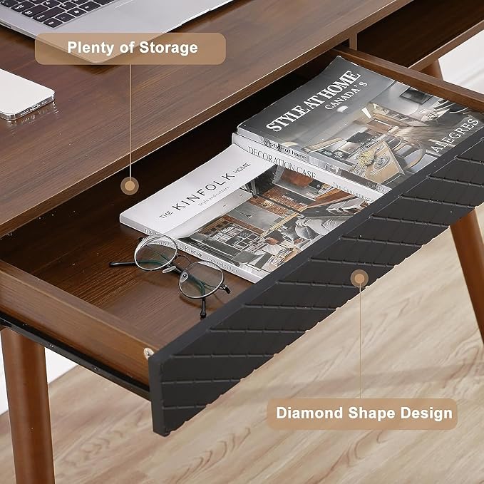 GAOMON Modern Home Office Writing Desk, 42 Inch Computer Table Desk with Drawers, Simple Mid Century Modern Desk, Walnut