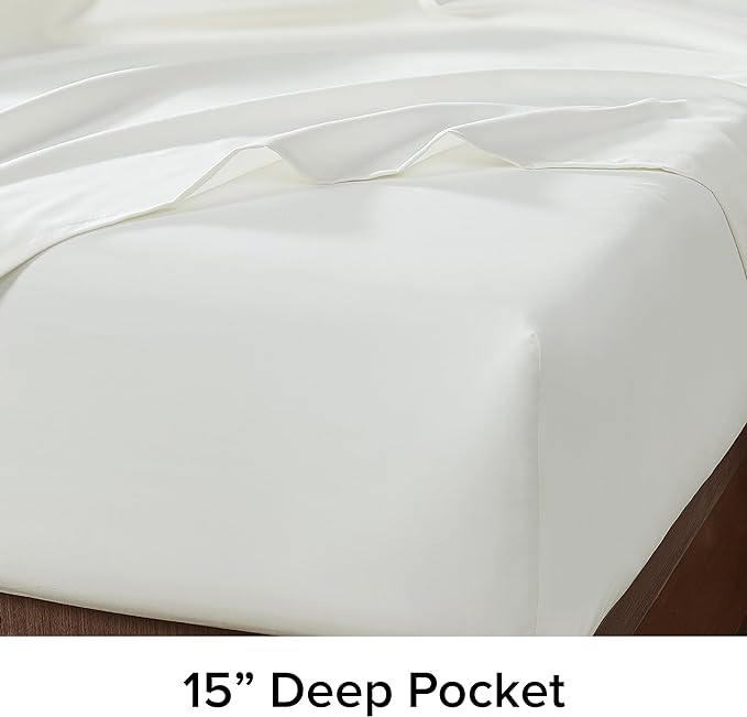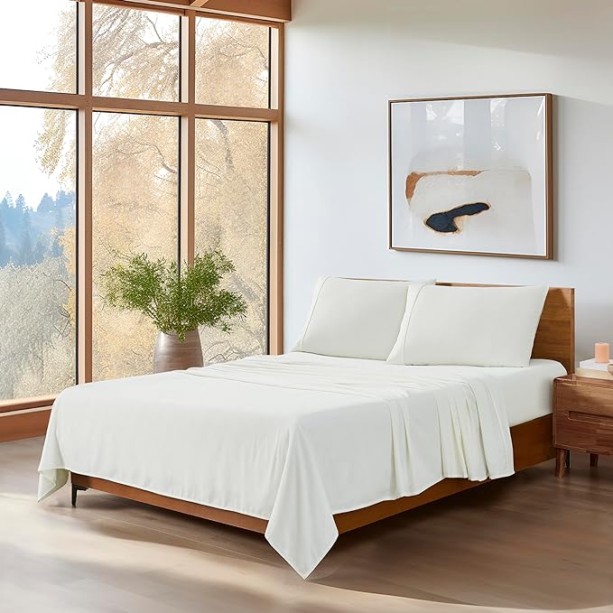 UGG 11787 Alahna Full Bed Sheets and Pillowcases 4-Piece Set Sleep in Luxury Machine Washable Deep Pockets Wrinkle-Resistant Breathable Cozy Comfort Silky Cooling Sheets, Full, White
