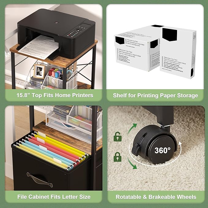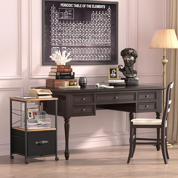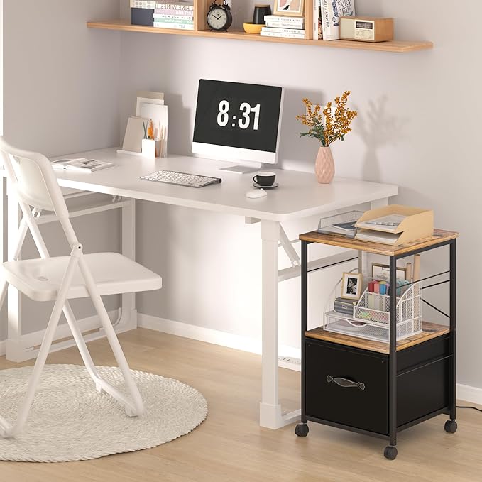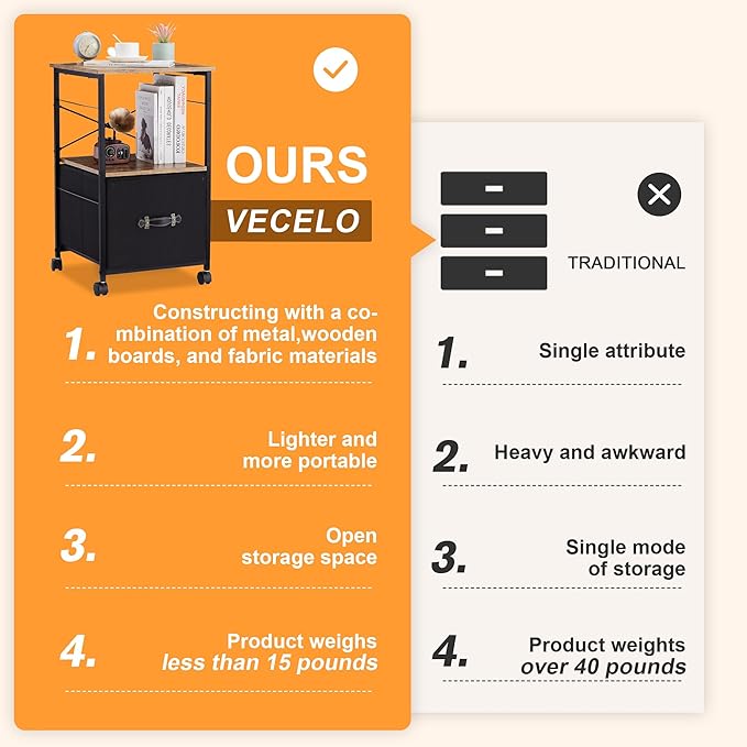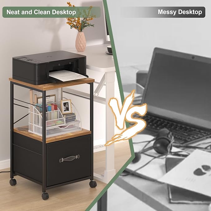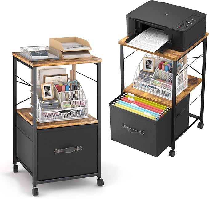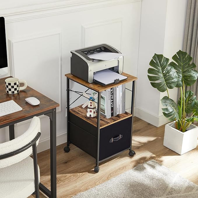 VECELO File Cabinet, Rolling Printer Stand with Large Fabric Drawer, Storage Cabinet Fits Letter Size, Ideal for Small Spaces, Apartments and Bedroom, Easy to Install, Brown+Black,2 Set