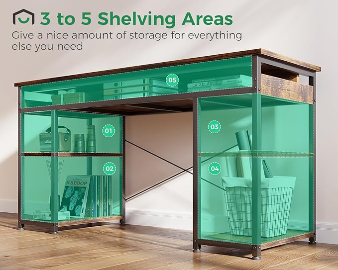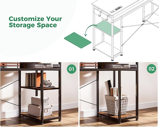 AODK 48 Inch Small Computer Desk with Power Outlets & Type-C, Writing Desk with Storage Shelves Headphone Hook, Student Laptop PC Desks for Small Spaces Home Office, Vintage