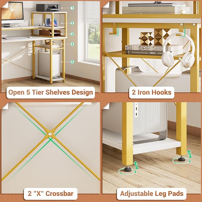 About This šš®šŗš¶š»š“ šš²ššø šš¶ššµ š¦šµš²š¹šš²š: iSunirm 47 inches gaming desk has 5-tier shelves that provide ample storage space while...