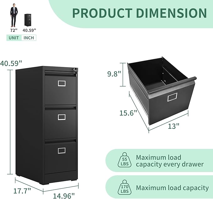 About This ✦【Spacious Storage & Organizaton】This metal 3 drawer file cabinet with lock offers spacious storage with larger and deeper...